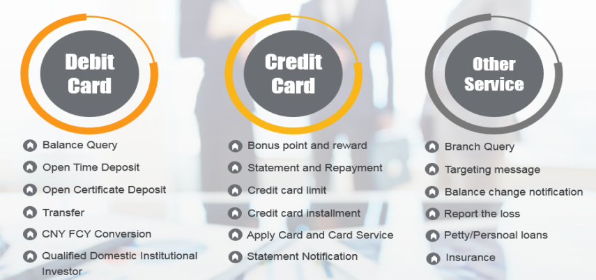 情報技術(shù)とインターネット技術(shù)を後ろ盾に、インターネットプラットフォームを土臺に、例えば、口座開設(shè)、口座抹消、照會、帳簿照合、銀行內(nèi)振替、銀行間振替、クレジット、オンライン証券、投資?資産管理などを含み、全方位的でリアルタイムかつ迅速な金融サービスをユーザーに提供します。