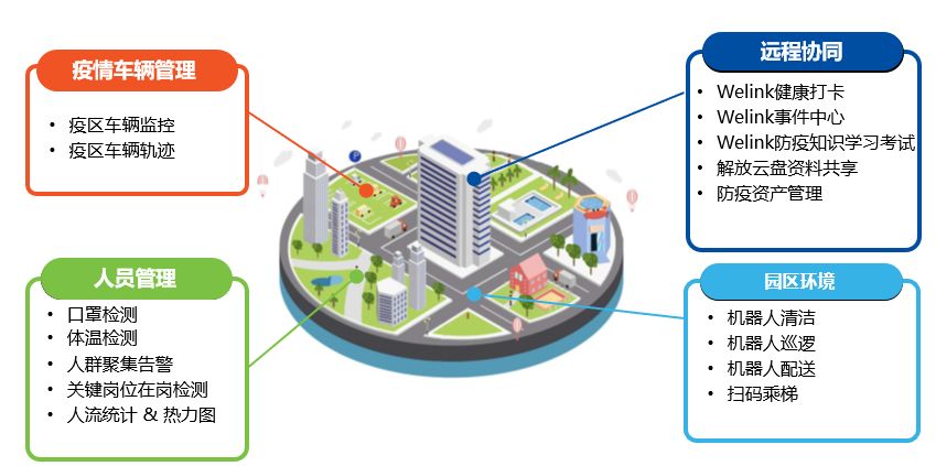 園區(qū)作為社會生產(chǎn)、生活的重要場所,人員活動頻繁,是疫情防控的重點場所。當(dāng)前,隨著企業(yè)復(fù)工潮的臨近,園區(qū)疫情防控面臨著更為復(fù)雜和嚴(yán)峻的挑戰(zhàn)。中軟國際攜手華為云等合作伙伴,以5G、大數(shù)據(jù)、AI、物聯(lián)網(wǎng)等技術(shù)為支撐,聯(lián)合發(fā)布智慧園區(qū)防控疫情一體化解決方案,緊密圍繞疫情車輛管理、人員管理、遠(yuǎn)程辦公協(xié)同、園區(qū)環(huán)境四大場景,幫助客戶實現(xiàn)園區(qū)的無人化、智能化和高效化管理,筑起病毒傳播的“隔離墻”,切實保障園區(qū)人員健康和生命安全。