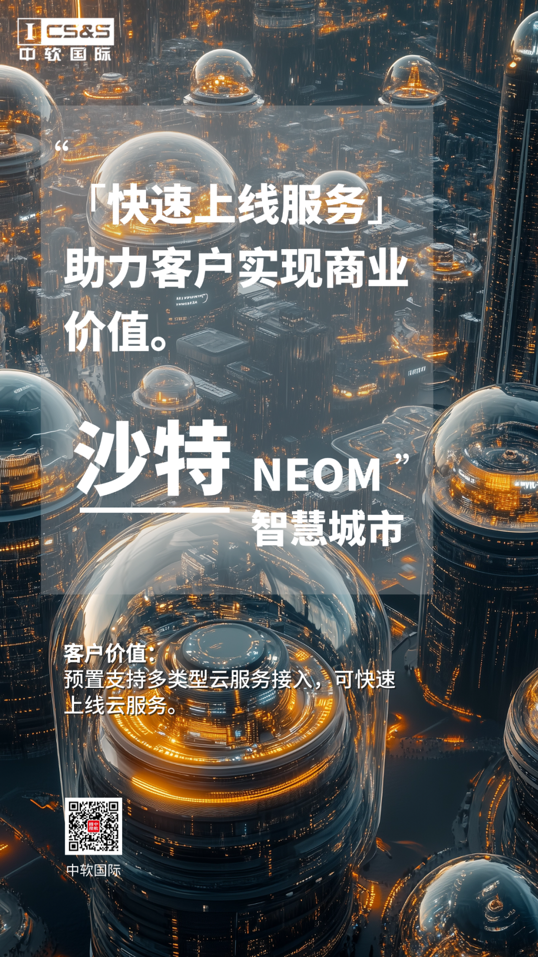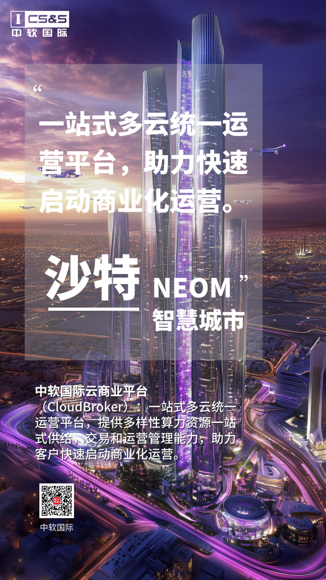 作為行業(yè)領先的軟件和服務提供商,中軟國際深耕云計算領域多年,憑借自主研發(fā)的云商業(yè)平臺和云管理平臺,為NEOM的云基礎設施建設和運營提供了有力支持,深度參與了未來之城的數字基礎設施建設,助力客戶實現商業(yè)價值: